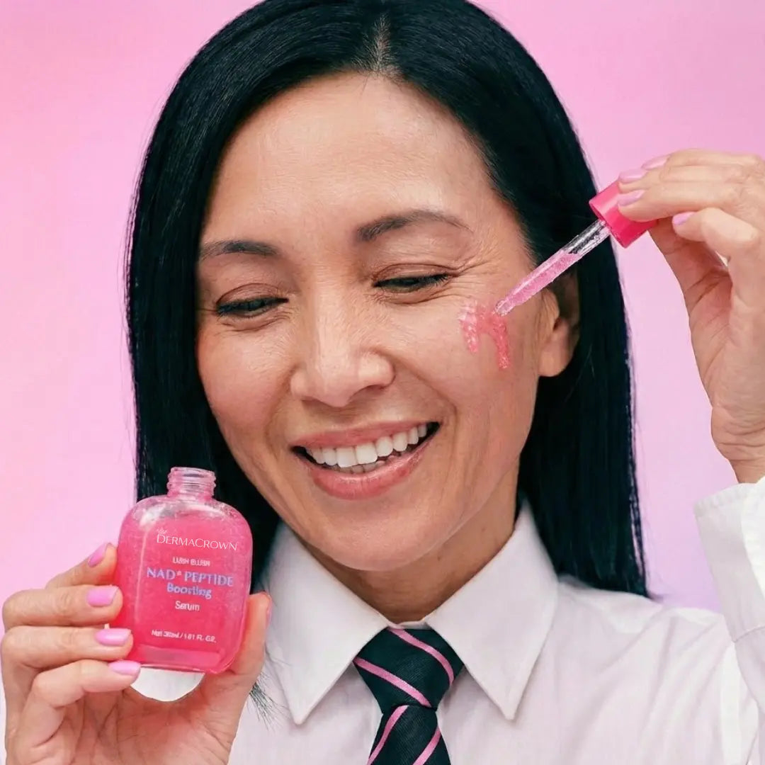 DermaCrown® NAD+ Peptide Boosting Serum is an anti-aging facial serum designed to help smooth fine lines, improve skin firmness, and support a more youthful-looking complexion.